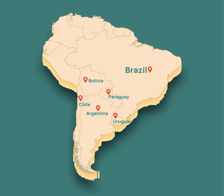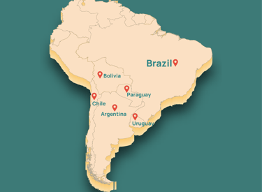 We source from South American countries such as: Argentina, Bolivia, Brazil, Chile, Paraguay, and Uruguay.